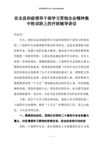 【七哥公文】2026年:在全县科级领导干部学习贯彻全会精神集中轮训班上的开班辅导讲话+更多免费公文+VX:QiGeGongWen2024