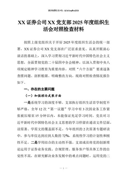 【七哥公文】2026年:XX证券公司XX党支部2025年度组织生活会对照检查材料+更多免费公文+VX:QiGeGongWen2024