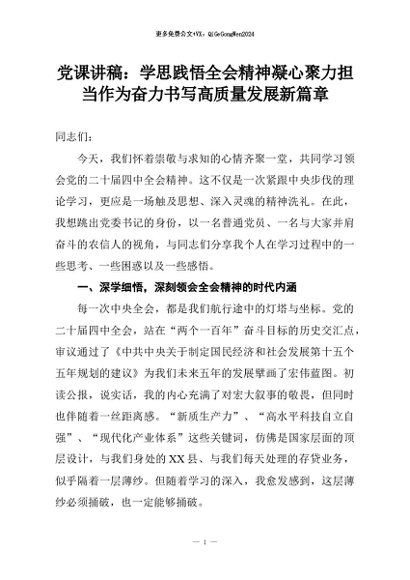 【七哥公文】2026年:党课讲稿:学思践悟全会精神凝心聚力担当作为奋力书写高质量发展新篇章+更多免费公文+VX:QiGeGongWen2024