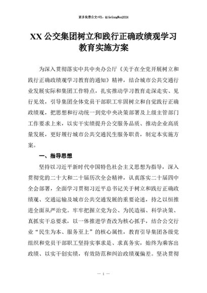 【七哥公文】2026年:XX公交集团树立和践行正确政绩观学习教育实施方案+更多免费公文+VX:QiGeGongWen2024