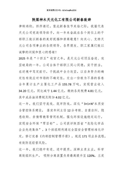 / 【七哥公文】2026年:陕煤神木天元化工有限公司新春致辞_副本+更多免费公文+VX:QiGeGongWen2024