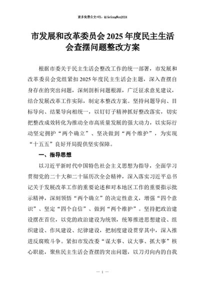 【七哥公文】2026年:市发展和改革委员会2025年度民主生活会查摆问题整改方案+更多免费公文+VX:QiGeGongWen2024