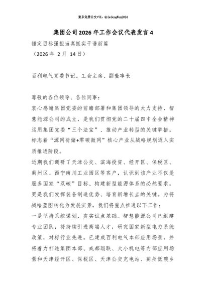 【七哥公文】2026年:集团公司2026年工作会议代表发言4_副本+更多免费公文+VX:QiGeGongWen2024