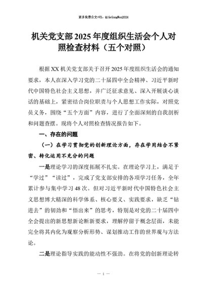 【七哥公文】2026年:机关党支部2025年度组织生活会个人对照检查材料(五个对照)+更多免费公文+VX:QiGeGongWen2024 - 七哥-AI智库