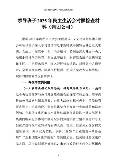 【七哥公文】2026年:领导班子2025年民主生活会对照检查材料(集团公司)+更多免费公文+VX:QiGeGongWen2024 - 七哥-AI智库
