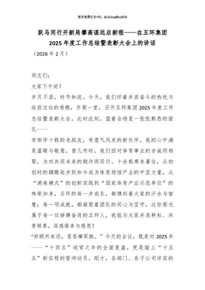 【七哥公文】2026年:跃马同行开新局攀高谋远启新程——在五环集团2025年度工作总结暨表彰大会上的讲话_副本+更多免费公文+VX:QiGeGongWen2024 - 七哥-AI智库