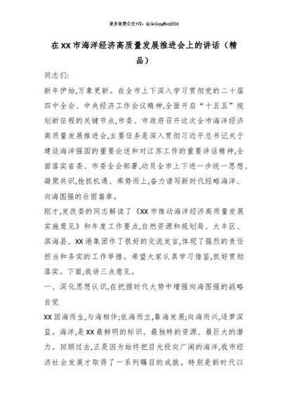【七哥公文】2026年:在XX市海洋经济高质量发展推进会上的讲话(精品)+更多免费公文+VX:QiGeGongWen2024