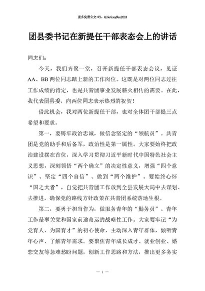 / 【七哥公文】2026年:团县委书记在新提任干部表态会上的讲话+更多免费公文+VX:QiGeGongWen2024