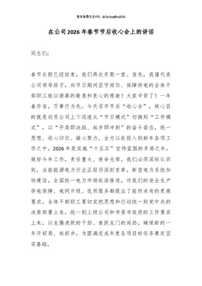 / 【七哥公文】2026年:在公司2026年春节节后收心会上的讲话_副本+更多免费公文+VX:QiGeGongWen2024