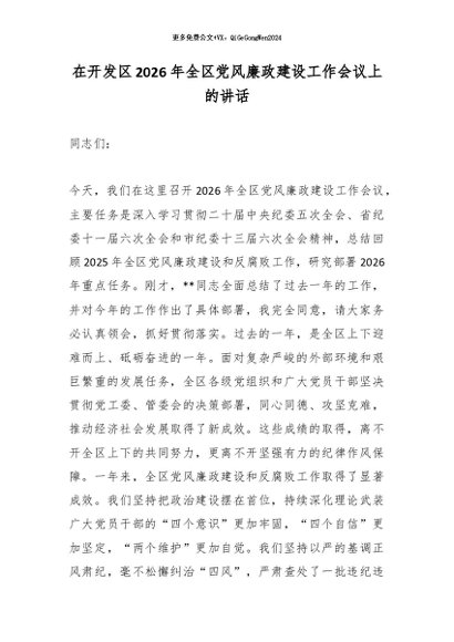 【七哥公文】2026年:在开发区2026年全区党风廉政建设工作会议上的讲话_副本+更多免费公文+VX:QiGeGongWen2024