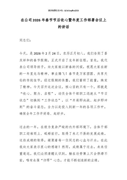 【七哥公文】2026年:在公司2026年春节节后收心暨年度工作部署会议上的讲话_副本+更多免费公文+VX:QiGeGongWen2024
