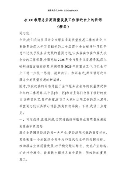 【七哥公文】2026年:在XX市服务业高质量发展工作推进会上的讲话(精品)+更多免费公文+VX:QiGeGongWen2024