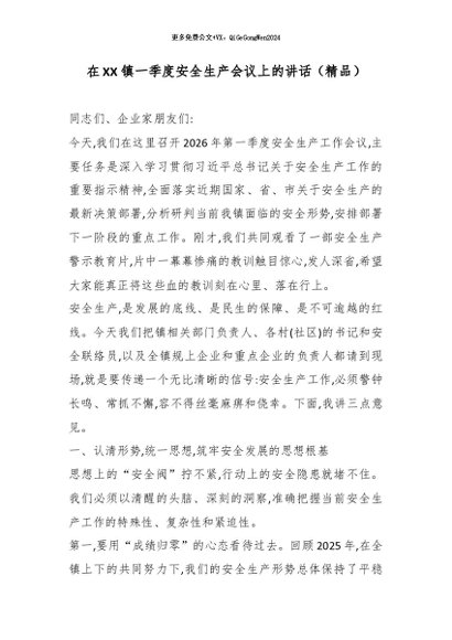 【七哥公文】2026年:在XX镇一季度安全生产会议上的讲话(精品)_副本+更多免费公文+VX:QiGeGongWen2024