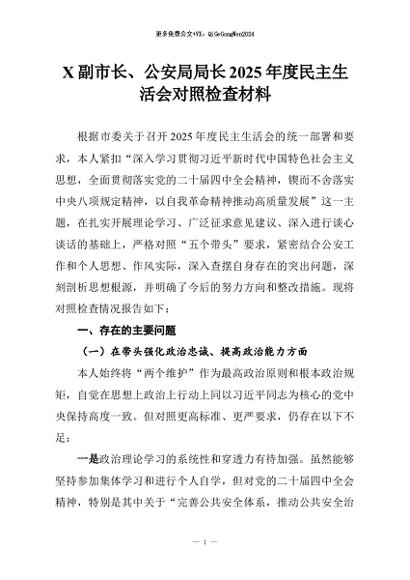 【七哥公文】2026年:X副市长、公安局局长2025年度民主生活会对照检查材料+更多免费公文+VX:QiGeGongWen2024
