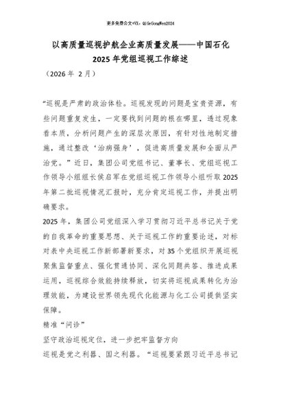 【七哥公文】2026年:以高质量巡视护航企业高质量发展——中国石化 2025 年党组巡视工作综述_副本+更多免费公文+VX:QiGeGongWen2024