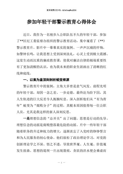 【七哥公文】2026年:参加年轻干部警示教育心得体会+更多免费公文+VX:QiGeGongWen2024
