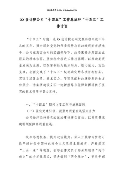 【七哥公文】2026年:XX设计院公司“十四五”工作总结和“十五五”工作计划_副本+更多免费公文+VX:QiGeGongWen2024