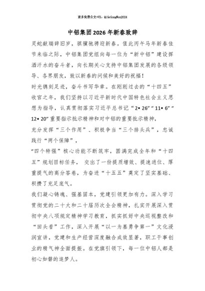 / 【七哥公文】2026年:中铝集团2026年新春致辞_副本+更多免费公文+VX:QiGeGongWen2024