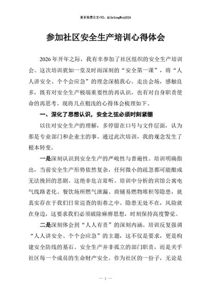 / 【七哥公文】2026年:参加社区安全生产培训心得体会+更多免费公文+VX:QiGeGongWen2024