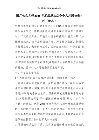 【七哥公文】2026年:副厂长党支部2025年度组织生活会个人对照检查材料(精品)+更多免费公文+VX:QiGeGongWen2024