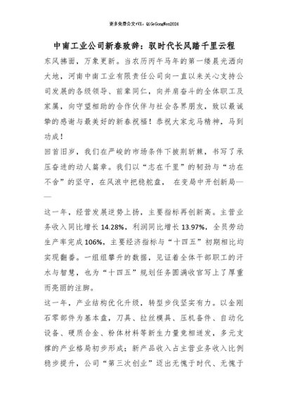 【七哥公文】2026年:中南工业公司新春致辞:驭时代长风踏千里云程_副本+更多免费公文+VX:QiGeGongWen2024