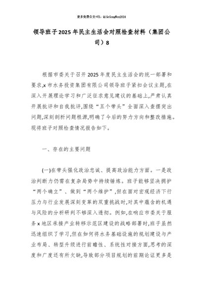 【七哥公文】2026年:领导班子2025年民主生活会对照检查材料(集团公司)8+更多免费公文+VX:QiGeGongWen2024