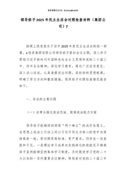【七哥公文】2026年:领导班子2025年民主生活会对照检查材料(集团公司)7+更多免费公文+VX:QiGeGongWen2024