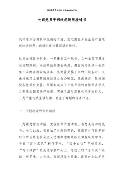 / 【七哥公文】2026年:公司党员干部违规违纪检讨书+更多免费公文+VX:QiGeGongWen2024
