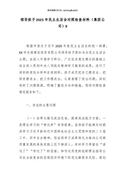 【七哥公文】2026年:领导班子2025年民主生活会对照检查材料(集团公司)9+更多免费公文+VX:QiGeGongWen2024