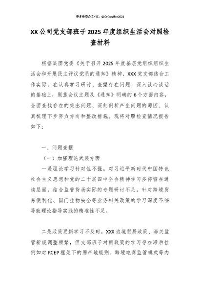 【七哥公文】2026年:XX公司党支部班子2025年度组织生活会对照检查材料+更多免费公文+VX:QiGeGongWen2024