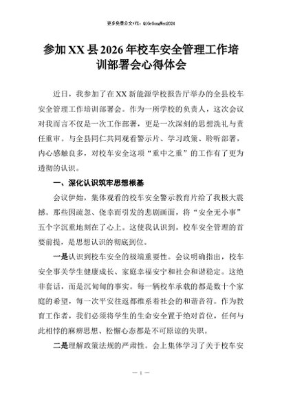 【七哥公文】2026年:参加XX县2026年校车安全管理工作培训部署会心得体会+更多免费公文+VX:QiGeGongWen2024