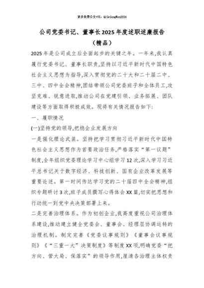 【七哥公文】2026年:公司党委书记、董事长2025年度述职述廉报告(精品)+更多免费公文+VX:QiGeGongWen2024