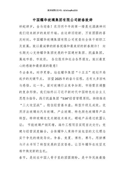 / 【七哥公文】2026年:中国耀华玻璃集团有限公司新春致辞_副本+更多免费公文+VX:QiGeGongWen2024