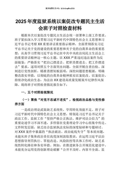 【七哥公文】2026年:2025年度监狱系统以案促改专题民主生活会班子对照检查材料+更多免费公文+VX:QiGeGongWen2024