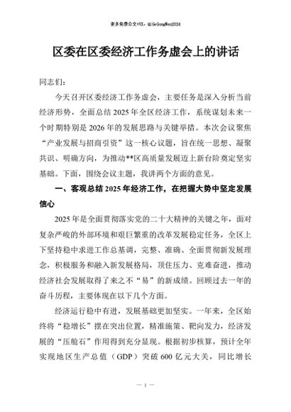 / 【七哥公文】2026年:区委在区委经济工作务虚会上的讲话+更多免费公文+VX:QiGeGongWen2024