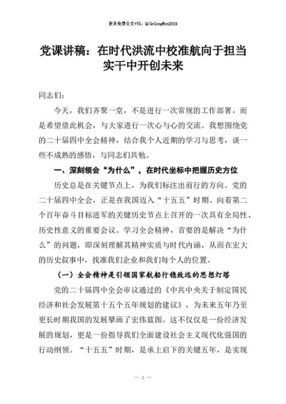 【七哥公文】2026年:党课讲稿:在时代洪流中校准航向于担当实干中开创未来+更多免费公文+VX:QiGeGongWen2024