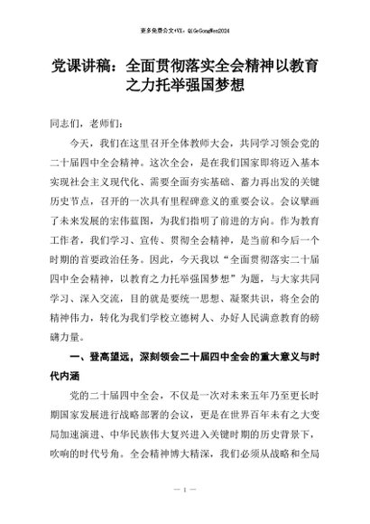 【七哥公文】2026年:党课讲稿:全面贯彻落实全会精神以教育之力托举强国梦想+更多免费公文+VX:QiGeGongWen2024
