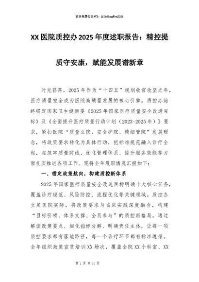 【七哥公文】2026年:XX医院质控办2025年度述职报告:精控提质守安康,赋能发展谱新章_副本+更多免费公文+VX:QiGeGongWen2024
