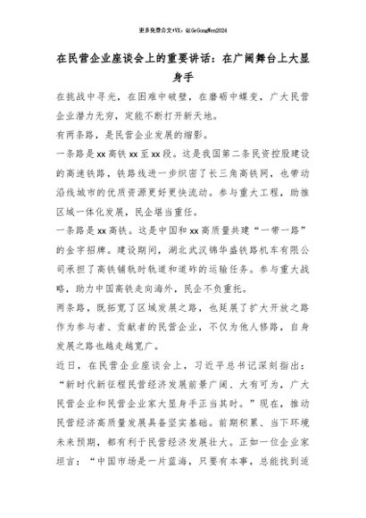 【七哥公文】2026年:在民营企业座谈会上的重要讲话:在广阔舞台上大显身手+更多免费公文+VX:QiGeGongWen2024