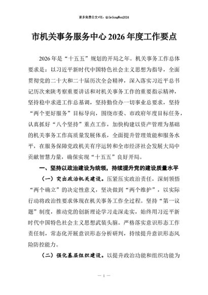 / 【七哥公文】2026年:市机关事务服务中心2026年度工作要点+更多免费公文+VX:QiGeGongWen2024