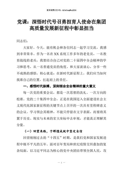 【七哥公文】2026年:党课:深悟时代号召勇担育人使命在集团高质量发展新征程中彰显担当+更多免费公文+VX:QiGeGongWen2024