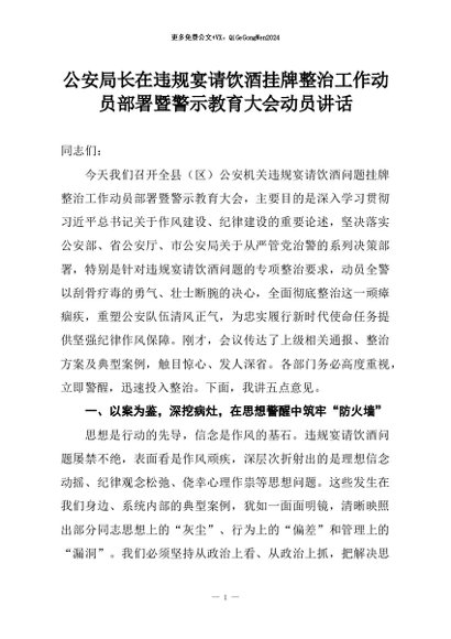 【七哥公文】2026年:公安局长在违规宴请饮酒挂牌整治工作动员部署暨警示教育大会动员讲话+更多免费公文+VX:QiGeGongWen2024