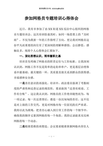 / 【七哥公文】2026年:参加网格员专题培训心得体会+更多免费公文+VX:QiGeGongWen2024
