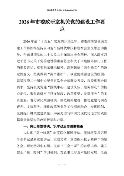 / 【七哥公文】2026年:2026年市委政研室机关党的建设工作要点+更多免费公文+VX:QiGeGongWen2024