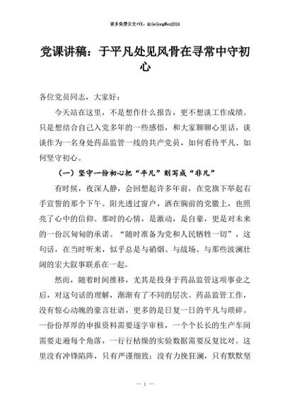 / 【七哥公文】2026年:党课讲稿:于平凡处见风骨在寻常中守初心+更多免费公文+VX:QiGeGongWen2024