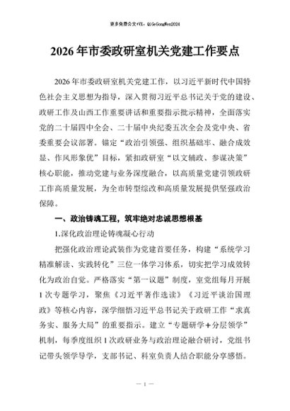 / 【七哥公文】2026年:2026年市委政研室机关党建工作要点+更多免费公文+VX:QiGeGongWen2024