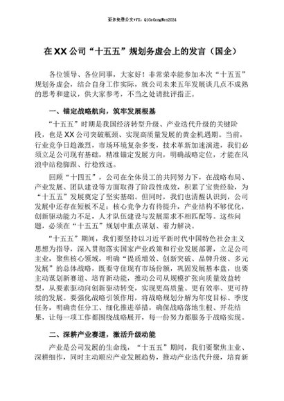 / 【七哥公文】2026年:在XX公司“十五五”规划务虚会上的发言(国企)+更多免费公文+VX:QiGeGongWen2024