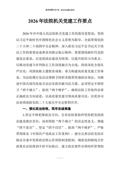 / 【七哥公文】2026年:2026年法院机关党建工作要点+更多免费公文+VX:QiGeGongWen2024