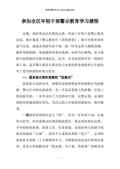 【七哥公文】2026年:参加全区年轻干部警示教育学习感悟+更多免费公文+VX:QiGeGongWen2024