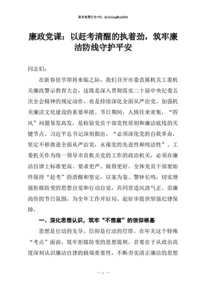 【七哥公文】2026年:廉政党课:以赶考清醒的执着劲,筑牢廉洁防线守护平安+更多免费公文+VX:QiGeGongWen2024